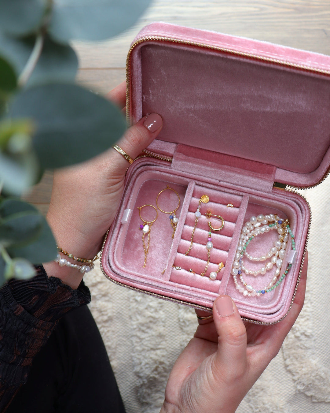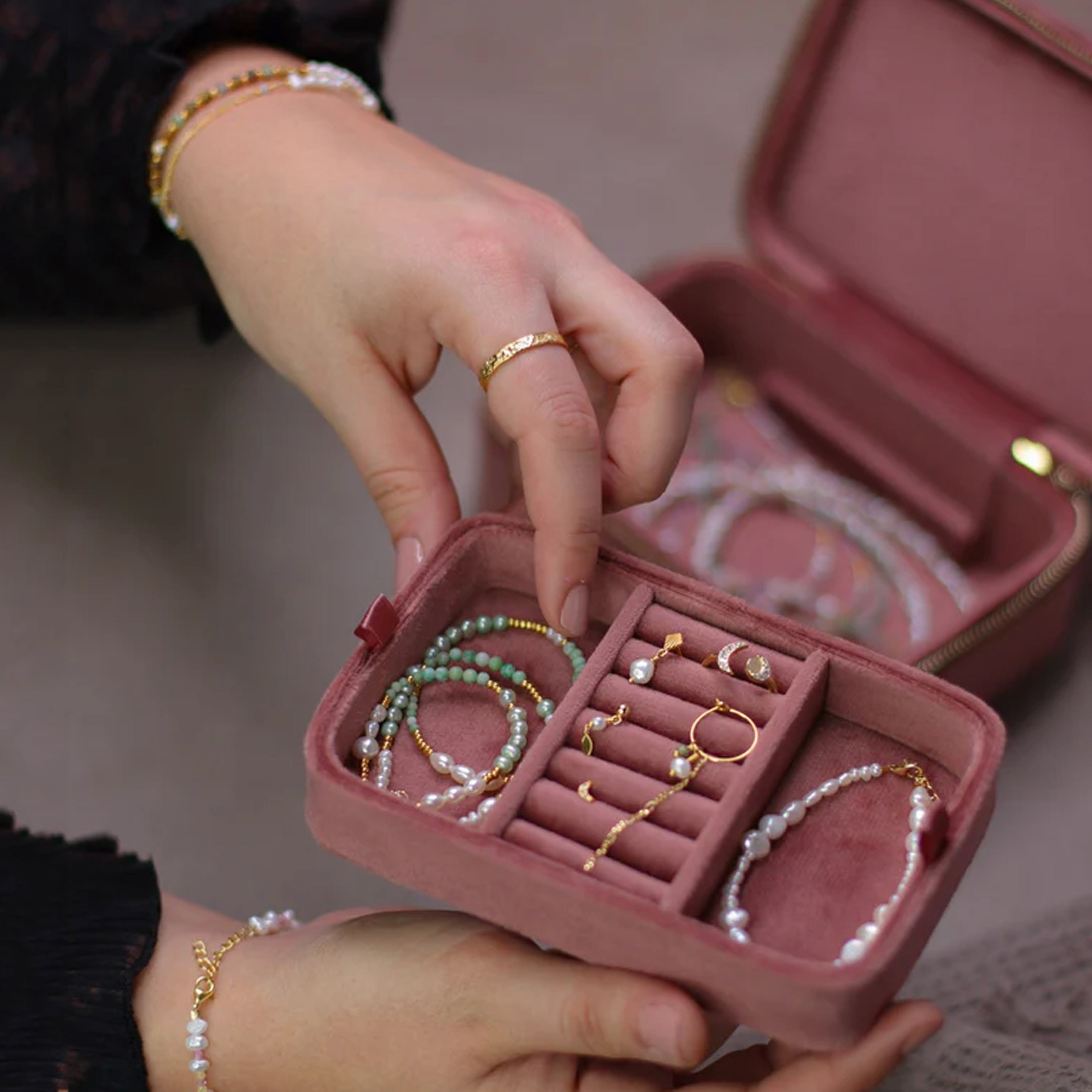 Med vores smykkeskrin kan du meget nemmere holde styr på dine smykker. De bløde rum beskytter samtidig smykkerne mod ridser og unødigt slid, så de holder sig pæne i længere tid.