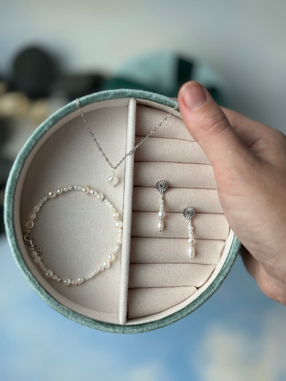 Du modtager dine nye smykker i en smuk velour smykkeæske, så du nemt kan passe godt på dem.